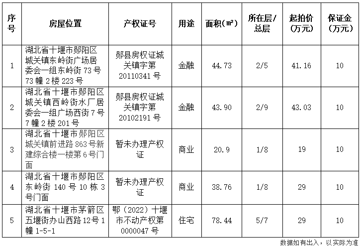 湖北鄖興拍賣有限公司將于2025年11月26日上午9時(shí)00分在中國(guó)拍賣行業(yè)協(xié)會(huì)網(wǎng)絡(luò)拍賣平臺(tái)(網(wǎng)址:https://paimai.caa123.org.cn)公開拍賣以下房屋產(chǎn)權(quán):
